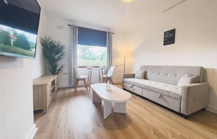 Stylish 3-bedroom home near King’s Park, Glasgow. Sleeps 8 – perfect for families, groups, or contractors. Just minutes from Hampden Park, Shawlands, and direct links to the city centre.